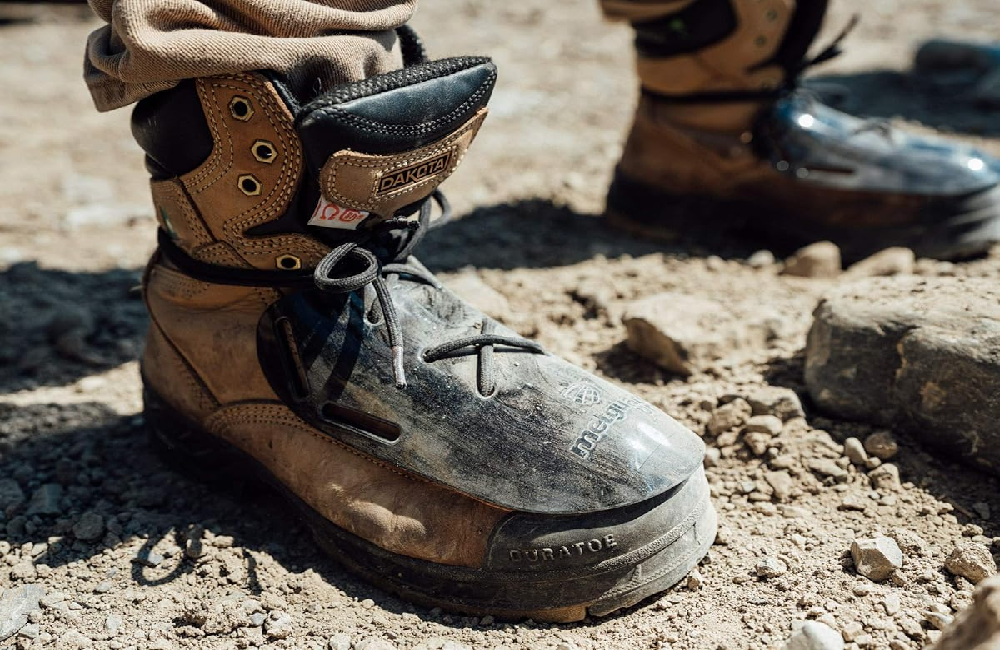 Durable, water-resistant boots with steel toes for added safety on construction sites